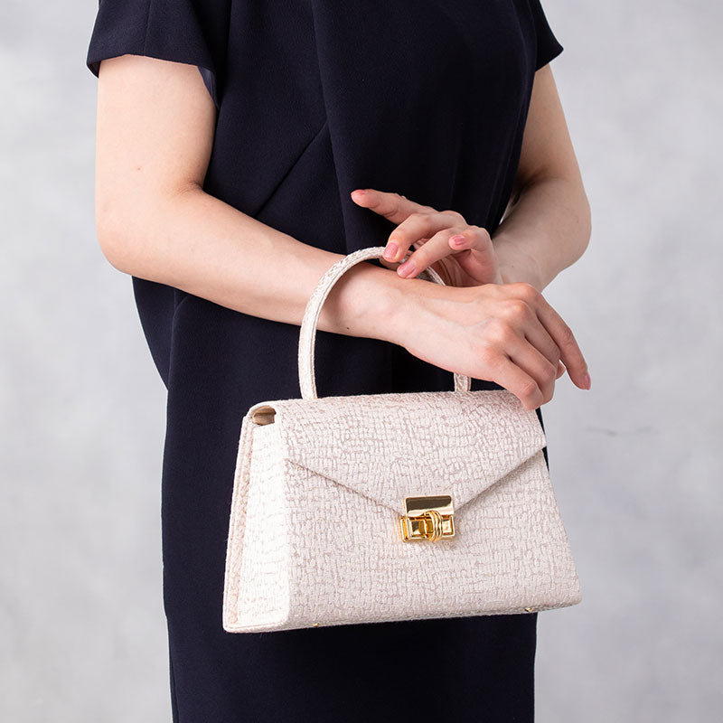 岩佐ではネックレスと合わせて、フォーマルな装いにマッチするハンドバッグの購入も可能です。こちらのバッグは、長財布も入るトップハンドル仕様。肩掛けデザインとしても使える2WAYタイプです。さまざまなシーンに活用できるので、揃えておいて損はないバッグだと言えるでしょう。